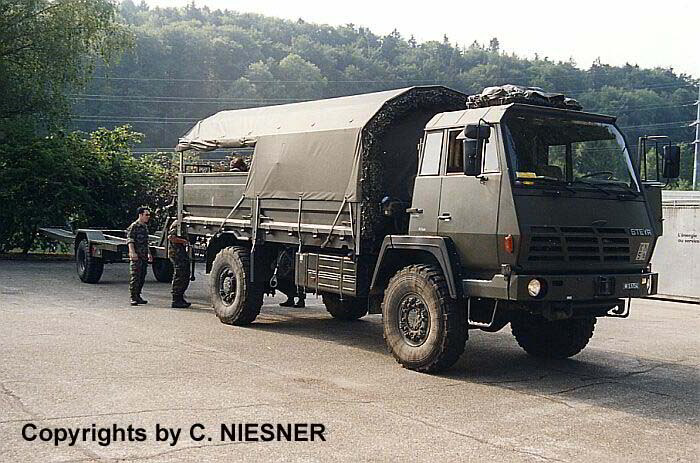 Steyr 680 des GenieBat5 zum Transport des MGB-Brückensystems